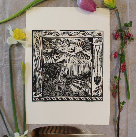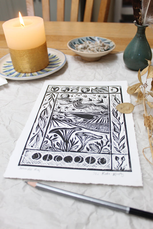'Autumn Roll Rims' Limited Edition Lino Print 25x18cm