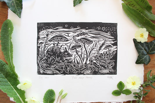 'Door Mouse Dreams' Limited edition lino print, 16x12 cm
