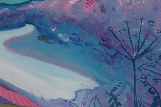 'Cow parsley over Cape Cornwall' Original painting, 100 x 50 cm
