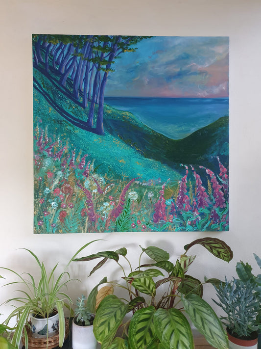'Last of the summer foxgloves' Original Oil on Canvas 80x50cm