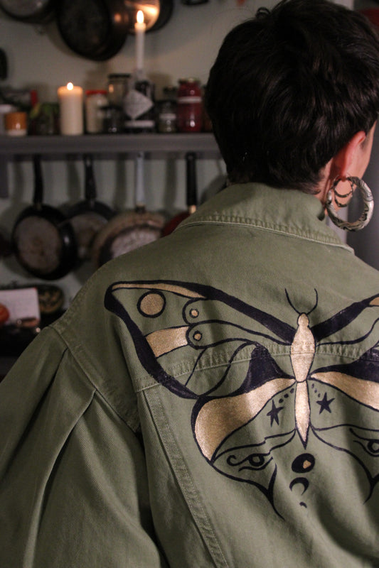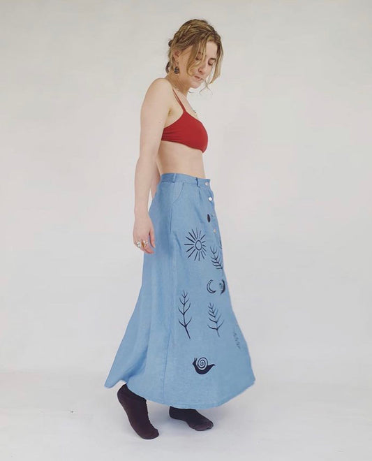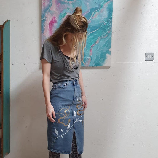 'Goddess snake skirt' Hand painted, up-cycled denim skirt
