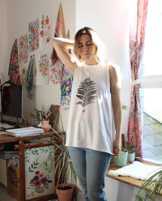 'Feeling Ferny' Hand printed, limited edition up-cycled vest top