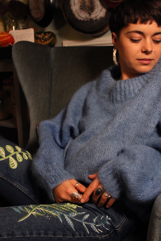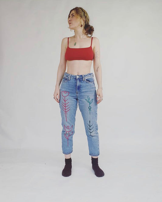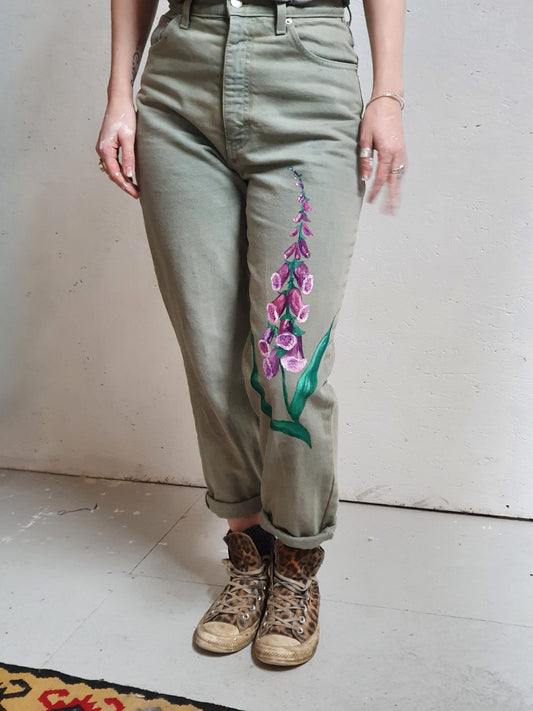 'Foxgloves' Handpainted up-cycled, denim mom jeans